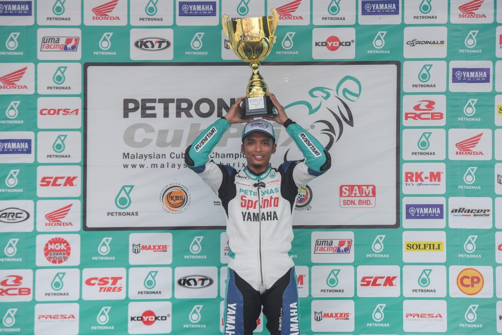 Round 9 of PETRONAS Malaysian Cub Prix Championship took place at Kompleks Sukan Permotoran Tangkak this evening. Md Akid Aziz of PETRONAS Sprinta Yamaha – CKJ Racing crowned Champion in the CP150 race category.