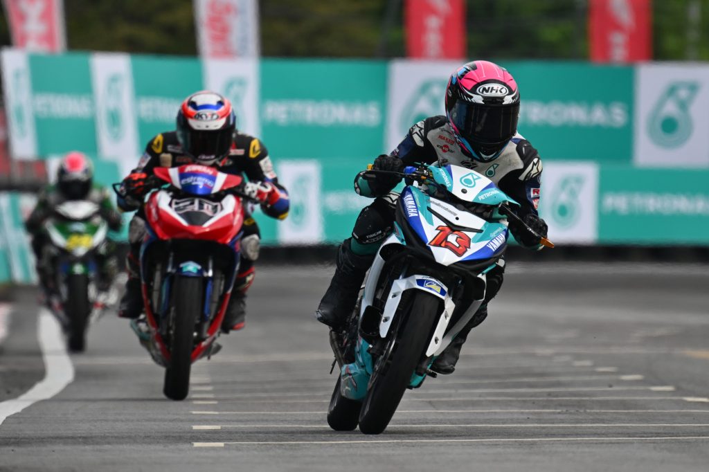 Earlier this afternoon in the Super-Pole session, Afif Amran of PETRONAS Sprinta Yamaha – CKJ Racing clocked in fastest at 43’798s consequently taking the pole position on the grid for the final race session. At the second spot was Muzakkir of ONEXOX TKKR Racing Team which his best lap time at 43’821s followed by Akid Aziz of PETRONAS Sprinta Yamaha – CKJ Racing Team at the third spot on the grid with his best lap time ta 44’088s.